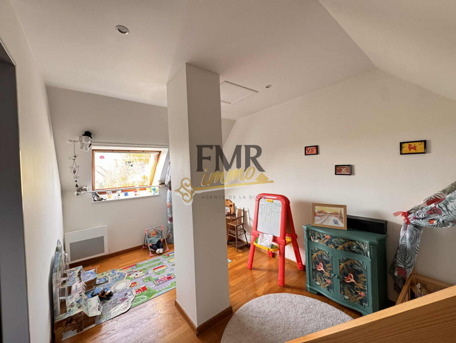 Côté Confort : Le sous-sol complet de 85m² comprend un garage, une buanderie avec douche et WC, un atelier et une chambre de 20m².