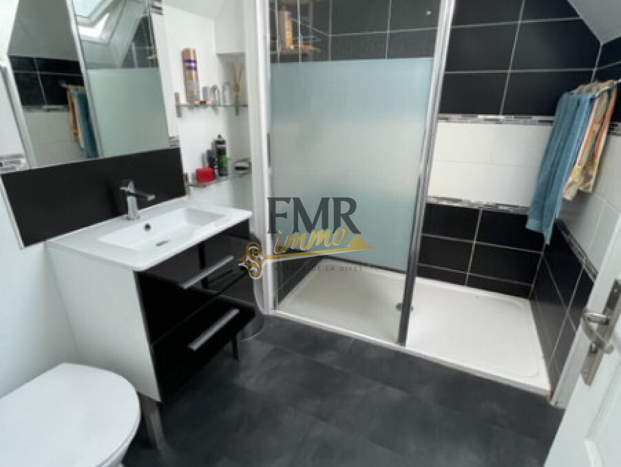 À l’étage : le palier dessert 3 chambres, une salle de bains + douche et wc ainsi que des rangements.