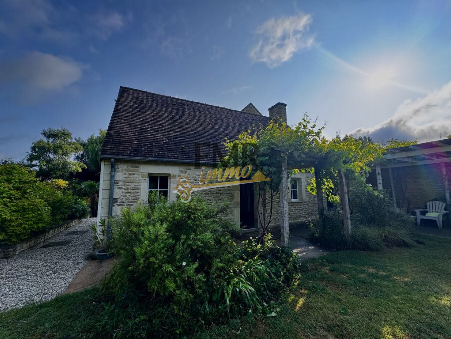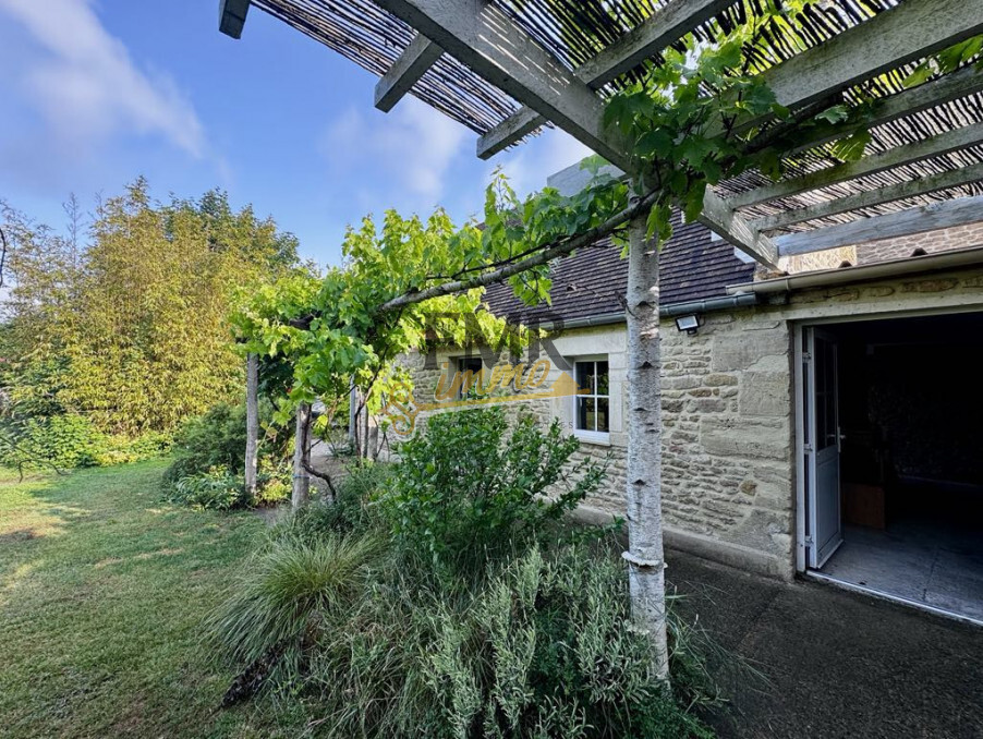 À 3 minutes de Saint-Pierre-sur-Dives, cette grande maison en pierres vous accueille au bout d’une allée arborée, dans un cocon de verdure, sans vis-à-vis. Un vrai havre de paix.
