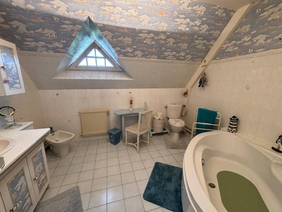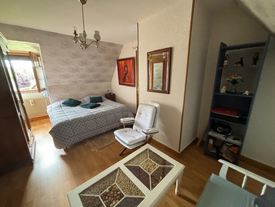 5 mn du centre ville Lisieux, cette Charmant Maison avec la vie de plain pied comprenant entrée, cuisine aménagée équipée, séjour avec cheminée insert, chambre, salle de douches, wc au rdc, palier, 2 chambres, salle de bains wc à l'étage.