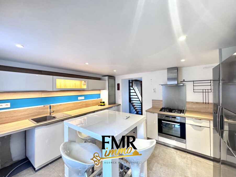 Au rez-de-chaussée, un séjour chaleureux vous accueille, une cuisine entièrement aménagée et équipée, WC indépendants, et accès direct au jardin.