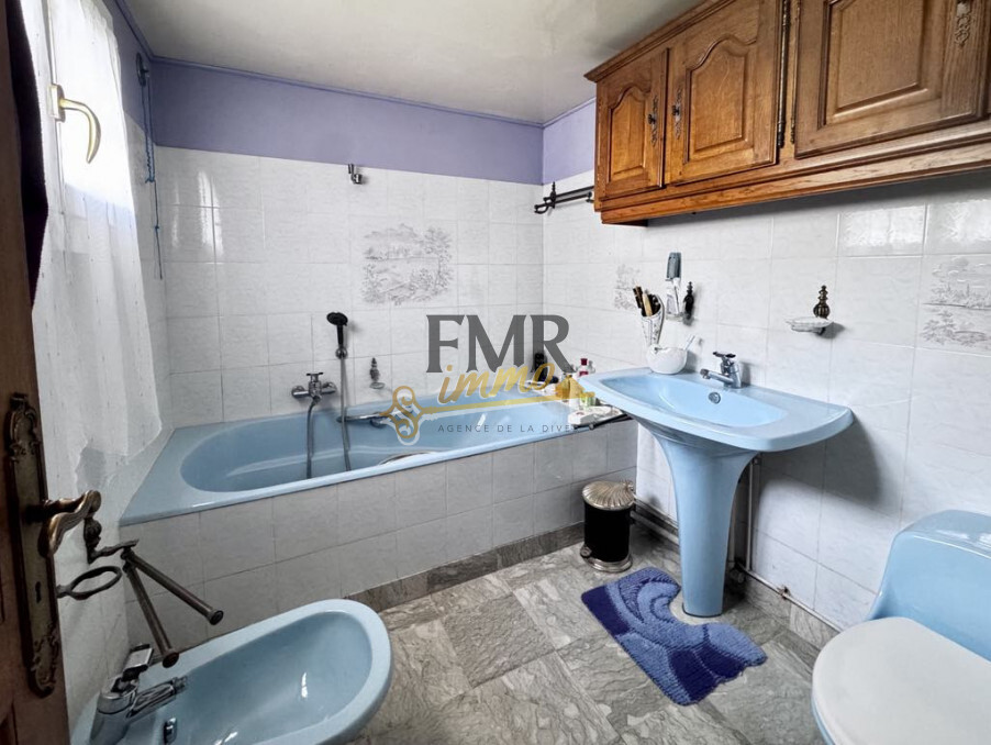 - Au RDC : entrée, WC, cellier, cuisine, double séjour avec cheminée et placards, salle de bains, couloir, 2 chambres.