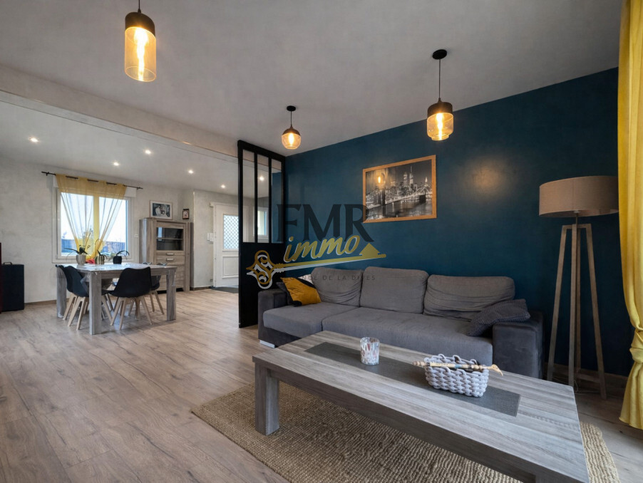 Au rez-de-chaussée, l’entrée s’ouvre sur une pièce de vie lumineuse comprenant salon et salle à manger.